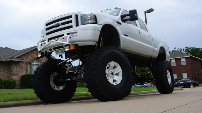 When in Texas for the NHRDA World Finals last year, we came across Trey Ging’s 2nd gen Dodge with a 24 inch lift. That truck was massive and quite the talk of the show and shine. If James Seaborn parked his 2006 Ford Super Duty next to it, he would be head and shoulders above Ging.