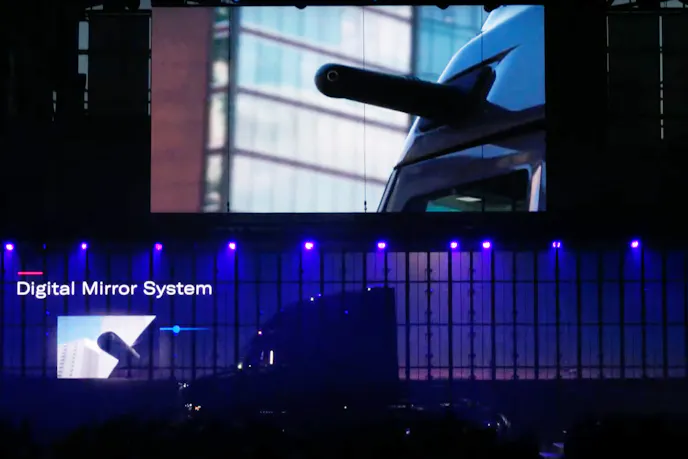 The new 13.0-liter Mack MP13 diesel engine provides a 3% increase in fuel efficiency over the MP8. It delivers up to 515 horsepower and up to 1,950 lb-ft of torque. The MP13HE (High Efficiency) provides up to 13% improved fuel economy compared to previous models. Among various improvements is an updated engine brake design that improves braking power. According to Mack, the Pioneer’s cutting-edge aerodynamics and engine/transmission upgrades improve fuel efficiency by 11% compared to the equivalent prior Mack model. Aiding in aerodynamics and increased visibility is Mack’s first-ever digital mirror system (DMS) that replaces traditional side mirrors with cameras and interior video screens. Ditching traditional mirrors equates to a 1% fuel savings alone.