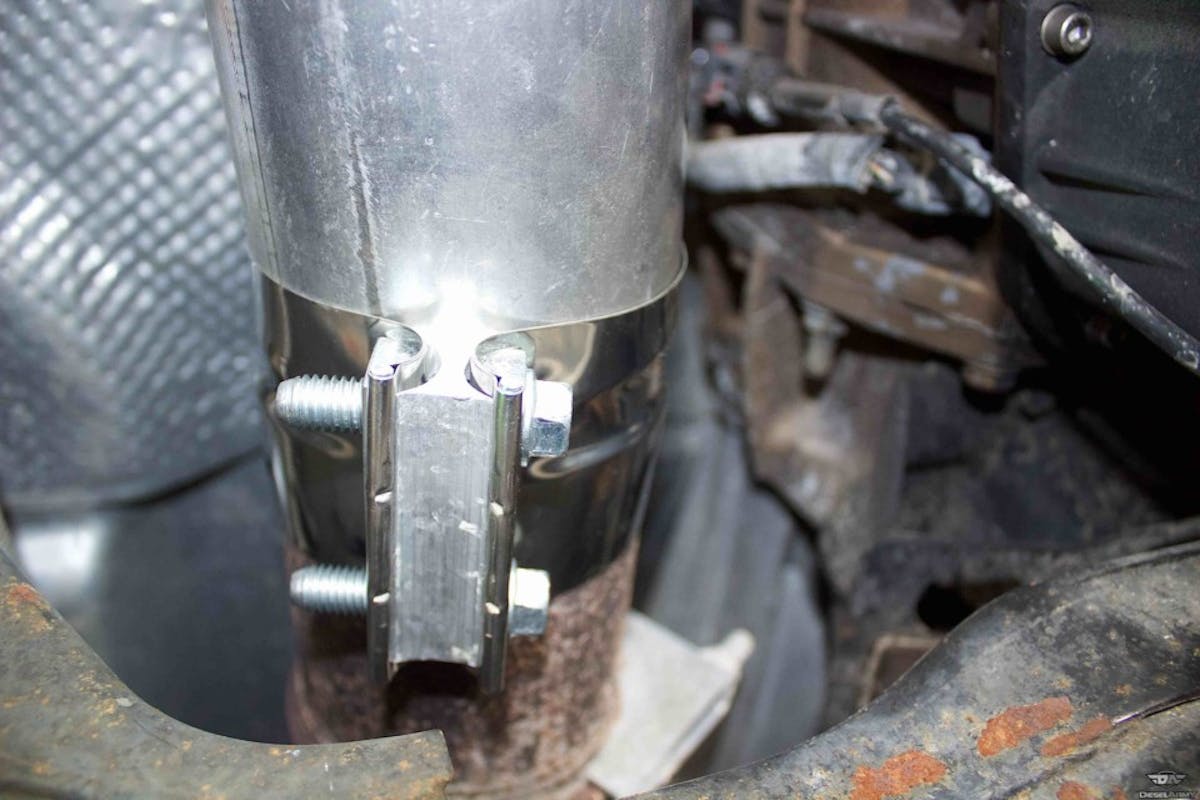 - Two-piece downpipe with Patent Pending smooth flow flange allows for easy adjustment and fit up to the existing exhaust system