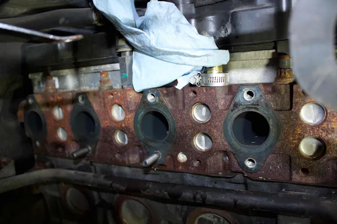 The exhaust manifold contained allen bolts to secure it to the cylinder head. With that being said, be careful pulling the mounting bolts out as they could strip (and I think we all know how disastrous that is going to be). Luckily for us, the bolts were anti-seized, so they came out of the cylinder head smoothly.