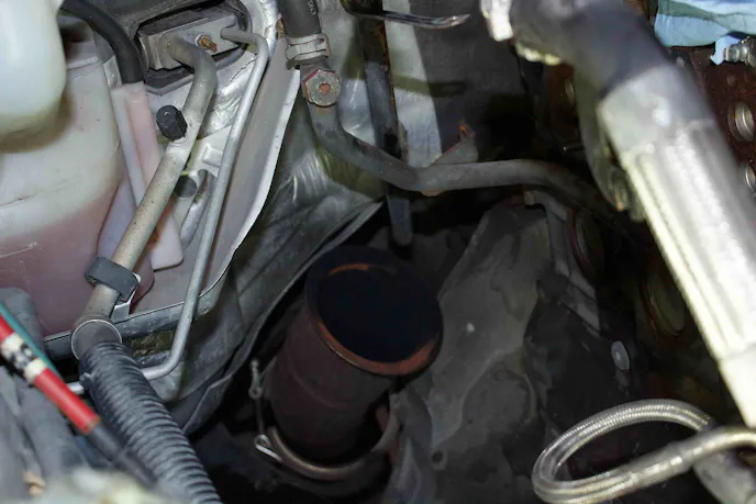 With an optimistic attitude, we dove right in. The first step to replacing the turbo is draining the coolant. The mistake I made was thinking I could do this without draining the coolant and just unplugging the hoses that are in the way and plugging them off. Well, long story short, the coolant needs to be drained.