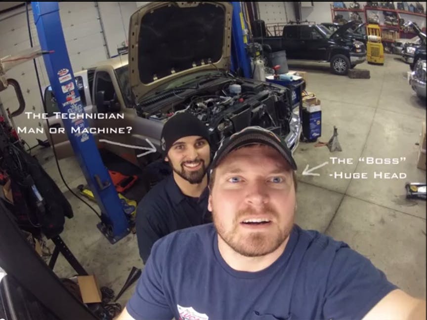 So, we always love to show you guys the behind the scenes of what it takes to get something done.(See photo with the guys labeled) Recently, Fleece Performance Engineering in Brownsburg, Indiana posted this time elapse video of them pulling the engine in LB7. (The LB7 was in GM vehicles from 2001 to 2004.) The video shows Technician Jacob Richards pulling the engine pretty much by himself.