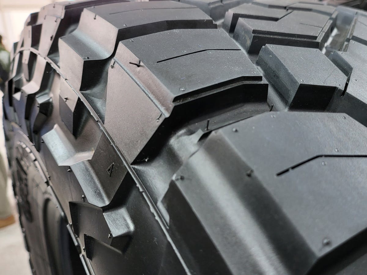 - Staggered scalloped shoulder blocks and an extra-thick sidewall