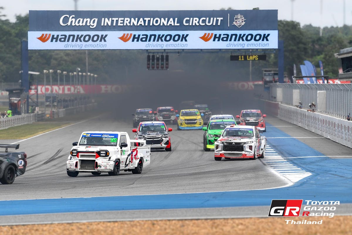 Toyota Gazoo Racing Thailand has turned the most unsuspecting little people-moving utilitarian diesel trucklet into a legit race truck, proving that you really can race pretty much anything. As part of its race program, the team runs this right-hand-drive #92 Toyota GR Hilux Champ (known as a Toyota Tamaraw in other markets) in the Thailand Super Pickup series, part of a larger program called the Thailand Super Series.
