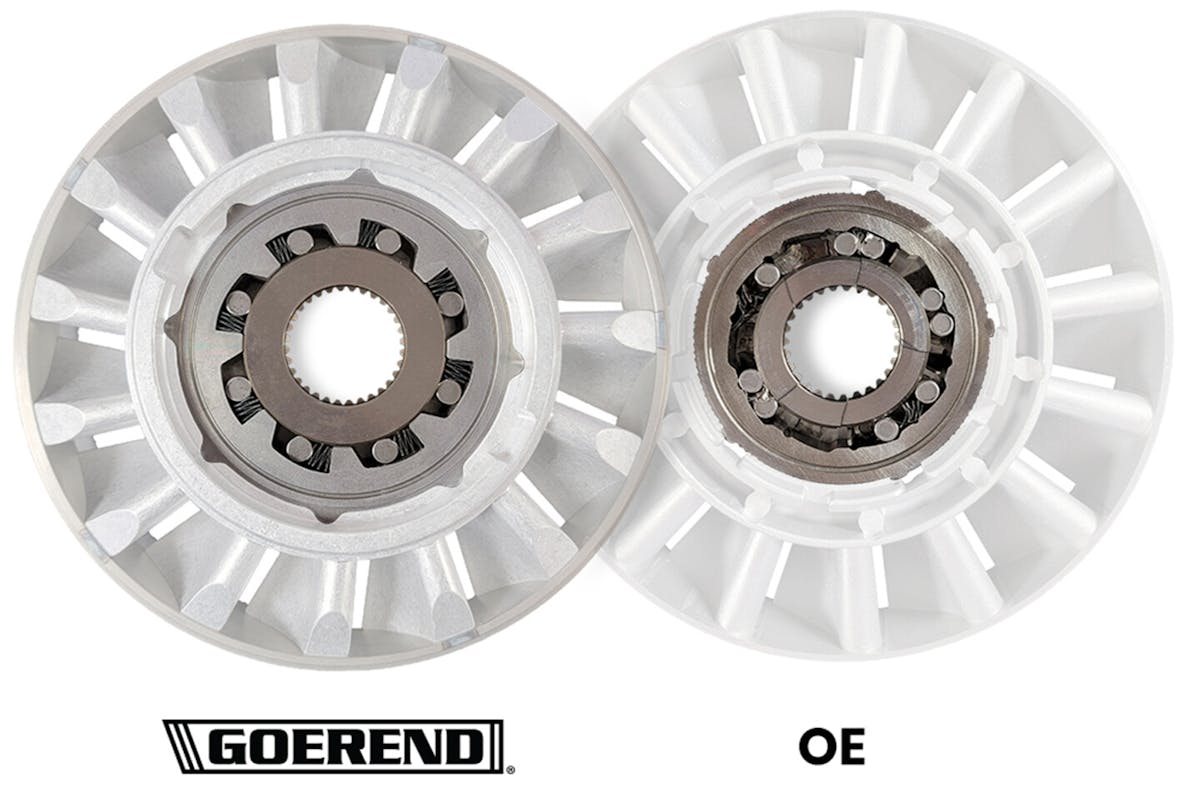 Torque converters assembled using Goerend’s billet aluminum stator are built with lugged outer races that will not strip out. Both the inner and outer races are wider and more substantial than OE to increase surface area and holding power, while preventing cracking failure. The steel outer ring is pinned to the stator, preventing it from being displaced and destroying the converter.