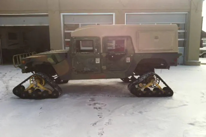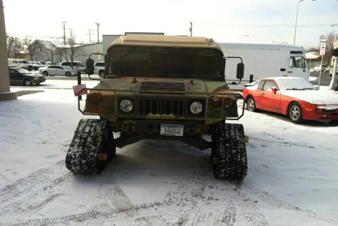 Last but not least, let us ask: Why? Wyoming, of course. That’s where we found this 1994 HMMMV. It’s riding around not on wheels, but on a set of Mattracks, which are aftermarket conversion kits that swap out wheels for continuous tracks.