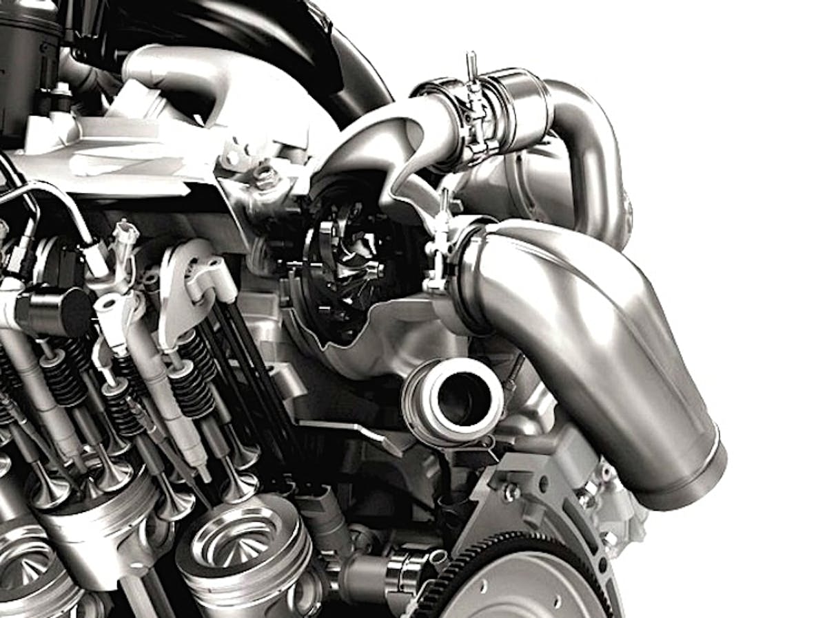 - Positioning the turbo inside the engine’s valley helps the engine efficiently use the hot temperatures, improving performance and efficiency, while also reducing noise, vibration and harshness
