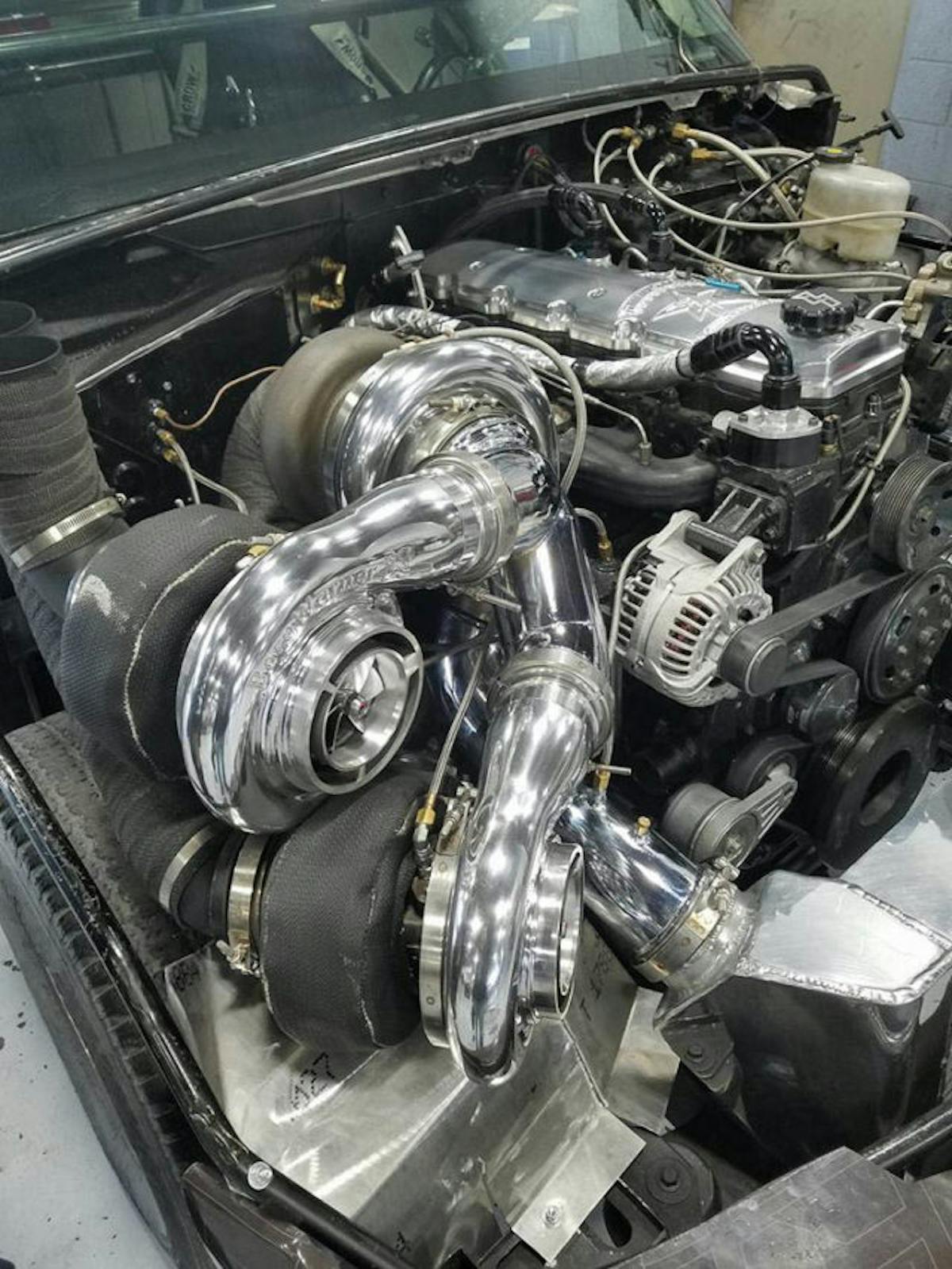 The truck is a 2001 Chevrolet 2500 HD on the outside, but its beating heart is an Industrial Injection Shredder Series Deck Plate 6.7-liter Cummins with Randy’s Transmissions 48RE manual valve body transmission. It started as a joke on social media, but they quickly discovered that the key to getting faster than a nine-second quarter mile was ditching the old Duramax engine. After years of butting against that limit, the Cummins power plant immediately boosted the truck into the high eight seconds.