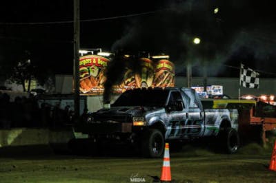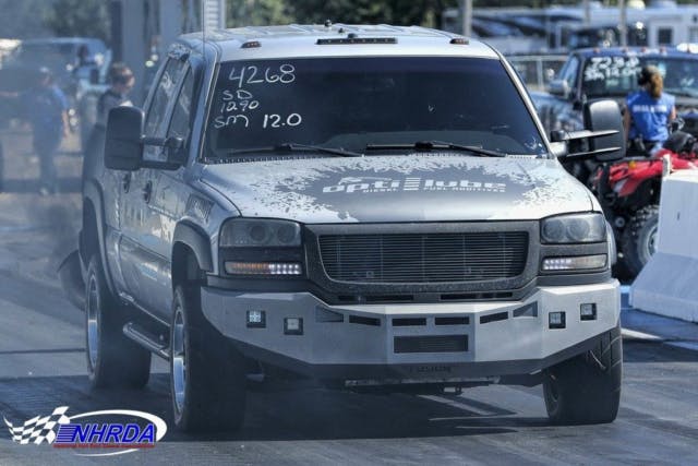 Bringing a Fummins to the party is Chris Battey. Battey drives a 2005 Ford F-350 dually with a 5.9-liter Cummins engine backed by a 5R110 filled with Revmax Converters internals and a Diesel Performance Converters torque converter.