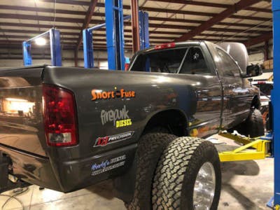 With his 2004.5 Dodge Ram 2500, Richard Nicolette, will be taking his competitive side into Indianapolis. With the help of Firepunk Diesel and D & J Precision Machine, the truck has evolved immensely in the last two years. A truck called “Short Fuse” will be handling a D & J Precision deck-plate engine backed by a Fireupnk Diesel Comp-3 transmission.