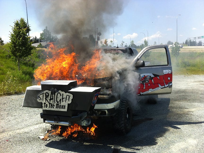 What a lot of people don’t know is that there are companies out there that will cover race vehicles both on and off the track. They will cover show vehicles that are worth more than what an equal year non-show vehicle is worth. If you have a lot of money tied up into your rig, it might be worth while to research some motorsports and racing insurance. It is insurance, so it isn’t free, but how much would it cost you if your rig goes up in flames like Kevin Weibe’s Straight To The Maxx?