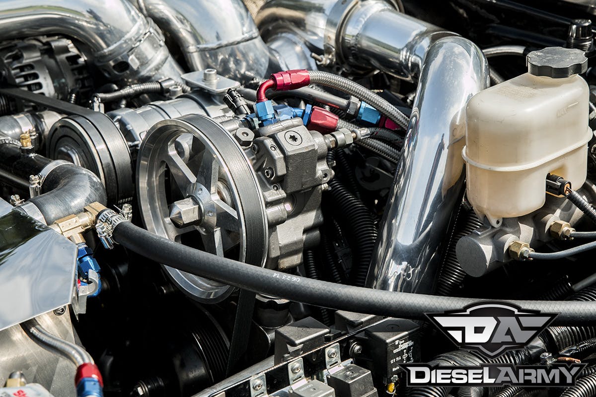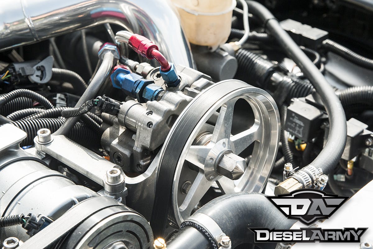 The second engine featured a stock block with a main girdle, Carrillo Rods, Mahle Motorsports pistons with custom bowls (Jon Fingers’ design), SoCal Diesel Stage 1 heads and camshaft. For a charger, he upgraded to a 72mm VVT high pressure and ran a BorgWarner S400 with an 83mm compressor wheel.