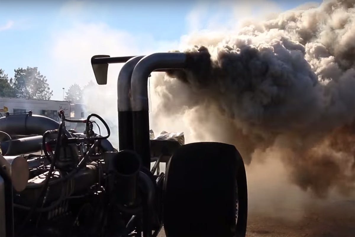 This rail features an International DT466 fed by a triple turbo compound induction system. Originally this straight-six, 466 ci diesel produced a maximum of around 300 hp. With an unknown amount of refining and boost, this unique powerplant puts down the power and torque to make passes with the big boys! Two Hypermax turbos located at the back of the engine, feed a third on the right hand side of the block before emptying their air-charge into the intake.