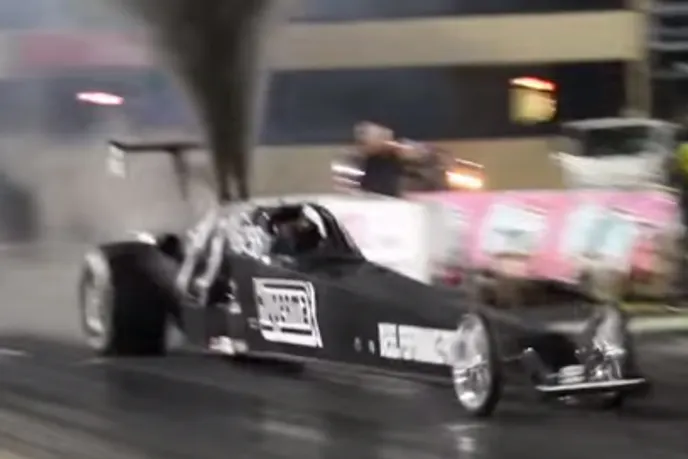 Up on stands, the crew runs the engine to warm the fluids in the powerplant, transmission, and Strange rear-end. The exhaust note bellows a cacophonous growl, staging at the lights, the turbo whistle overpowers the combustion pops and we are left questioning, is this a turbine powered car?