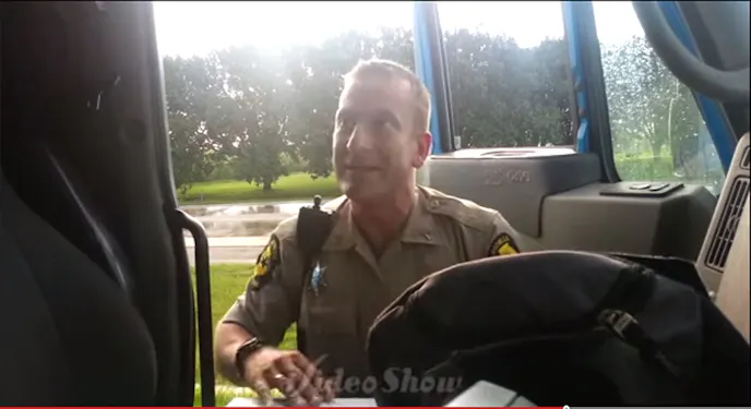 When the officer comes back to the truck, he was pretty cool. Perhaps he had a few minutes to think about what Miner had to say, or he knew he was being recorded. Either way, a very different officer returned.