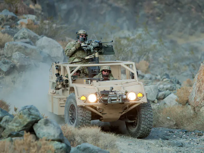 According to the General Dynamics website, “The Flyer vehicle was developed to fill operational gaps in fixed and rotary wing ground mobility deployment requiring a lightweight, mobile, air transportable vehicle capable of being rapidly reconfigured for a variety of mission needs. As a reliable and high performance vehicle, the Flyer offers safe and fast operating speeds with superior levels of mobility and maneuverability. It’s highly adaptable to severe, ruggedand restrictive terrains while providing off-road, cross-country mobility in all types of weather conditions.”