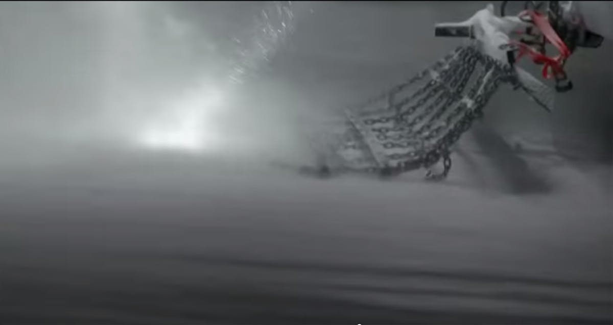 For years manufacturers have drug chains, pieces of fence and all sorts of custom setups to kick a large amount of snow up into the front of the vehicles while driving. It appears that Ram uses a chain setup with cross bars to hold the chains in place.