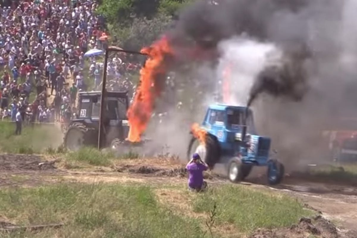 Spectators attendance looks like it could be in the 10,000s and the action is nonstop. How long till we have the guts to race tractors like this?