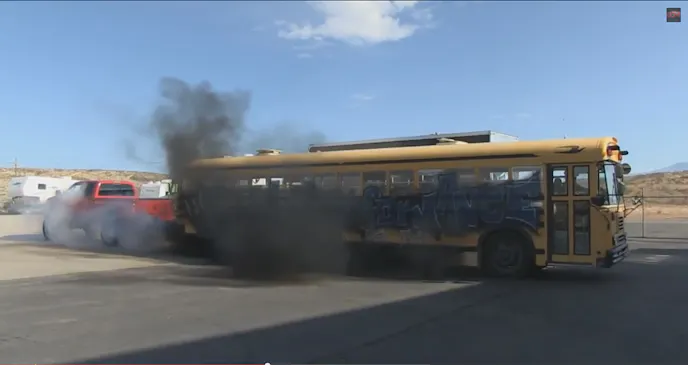 Either way, this video is fun to watch as the Super Duty just roasts the tires off pulling the bus. The icing on the cake, the Power Stroke blows a head gasket!