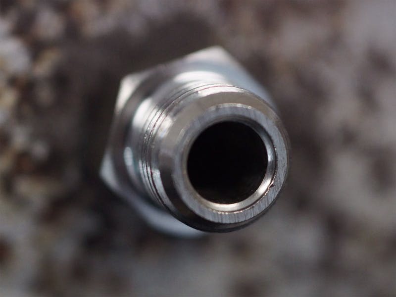 The video shows one of the exhaust manifolds uninstalled from the engine. As Brett says, “It just made more sense, and it was easier for me to do it that way.” We see right away that a small hole has been drilled out. The hole was then tapped and threaded for a fitting for the sensor. With the sensor installed, Brett had to find a grommet in the firewall. This was where the cable from the sensor to the programmer would route.