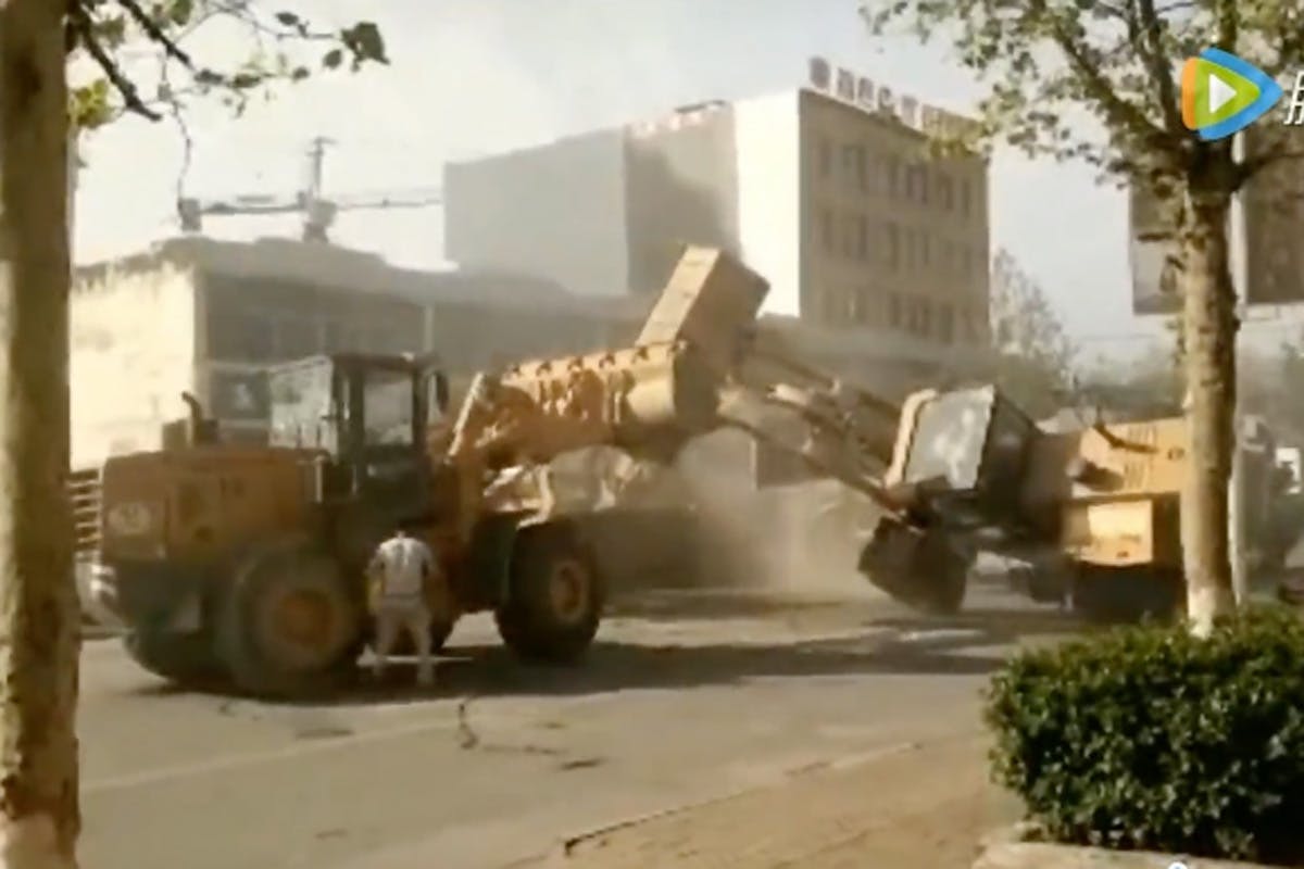 They do not just use their buckets to hit each other, but they attempt and succeed in flipping one of the trucks over. It is almost shocking to watch the video as it seems like something that would never happen. What do you think of the battle? Tell us in the comments below!