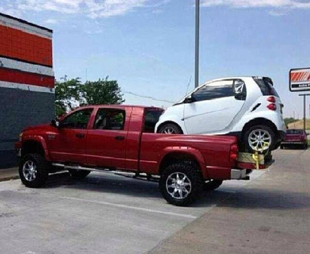 According to KRON 4 news, there were 4 Smart Cars tipped in one night. Much the same as a farmer keeps the herd close when there is trouble brewing; many owners are looking to their friends for protection. Caught at an Autozone, one Smart Car was actually hitching a ride in the bed of a Mega Cab Short Bed Ram.