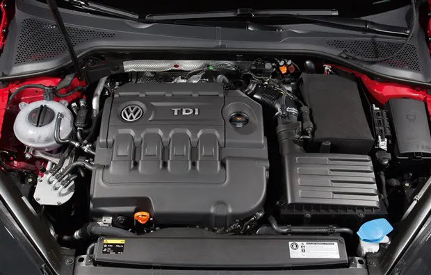The new EA288 engine will eventually replace all the 2.0-liter TDI Clean Diesel engines currently fitted in Audi and Volkswagen TDI Clean Diesel models. This turbocharged, common-rail, direct-injection four-cylinder engine makes 150 horsepower—an increase of 10 hp over the current engine—and 236 pound-feet of torque. This powerplant shares only the bore spacing with the previous diesel engine that had the same designation. A number of changes have been made to help reduce emissions, such as: use of a complex exhaust gas recirculation system; integration of the intercooler with the intake manifold, which also improves throttle response; and packaging the exhaust after-treatment components close to the engine.