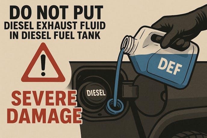 Putting DEF in your diesel tank is a serious but surprisingly common mistake. Don’t panic, and definitely disclose the situation to someone in-the-know. If you catch it early and avoid starting the engine, you can minimize the damage. Obviously, prevention is key, so always double-check the caps before refueling or topping-off fluids—diesel in the fuel tank, DEF in the DEF tank.