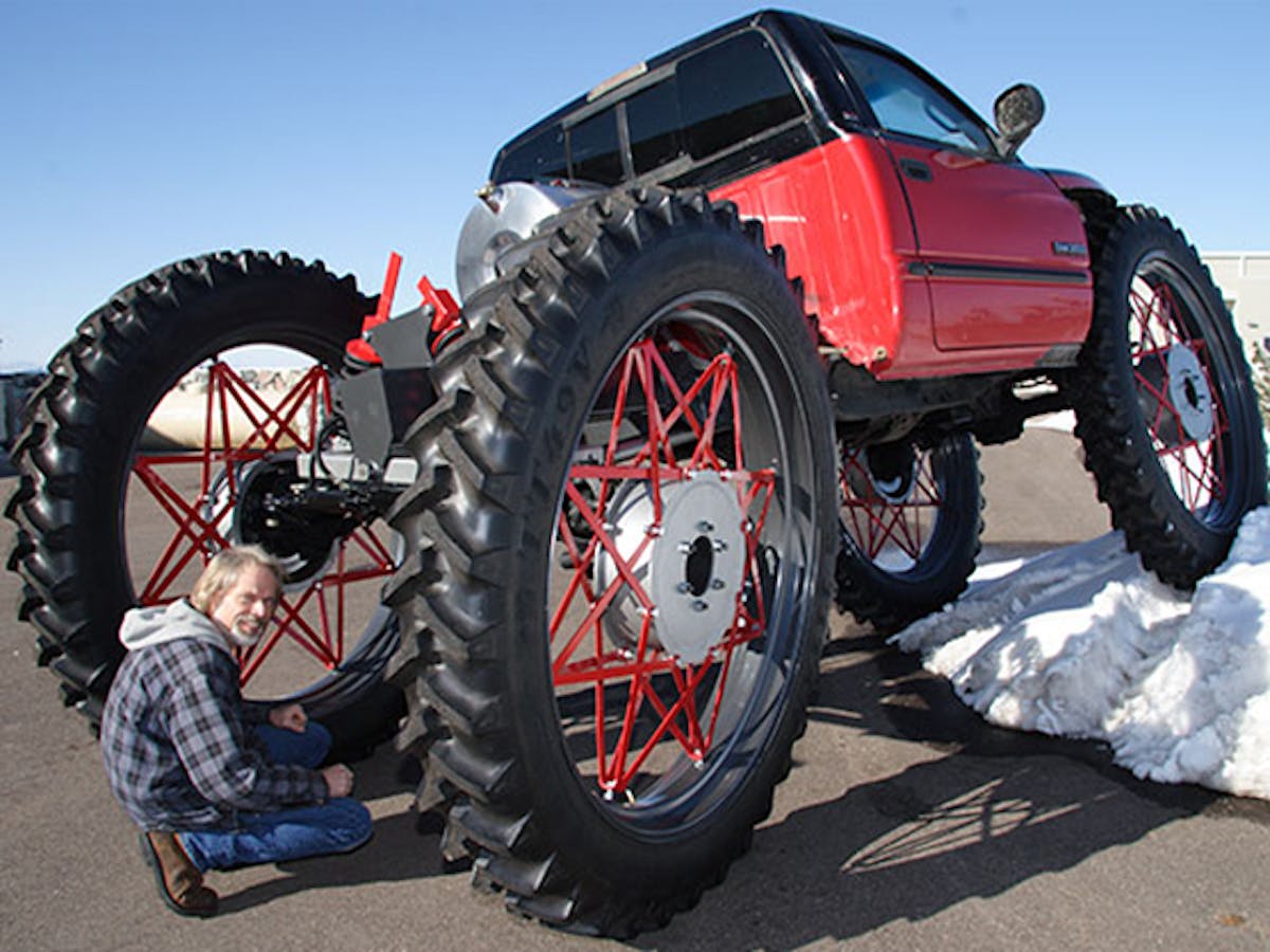 Starting us off is the Yeti Concept Truck. From what we could dig up, it was built by Rex Bailey to conquer the harsh terrain of the snowy Rocky Mountains. Perhaps the 76-inch tires are a bit much, no? Judging by the video, the truck had a way of getting stuck more than it did clamber over snow banks. Oh, and did we mention it’s got rear-wheel steering?