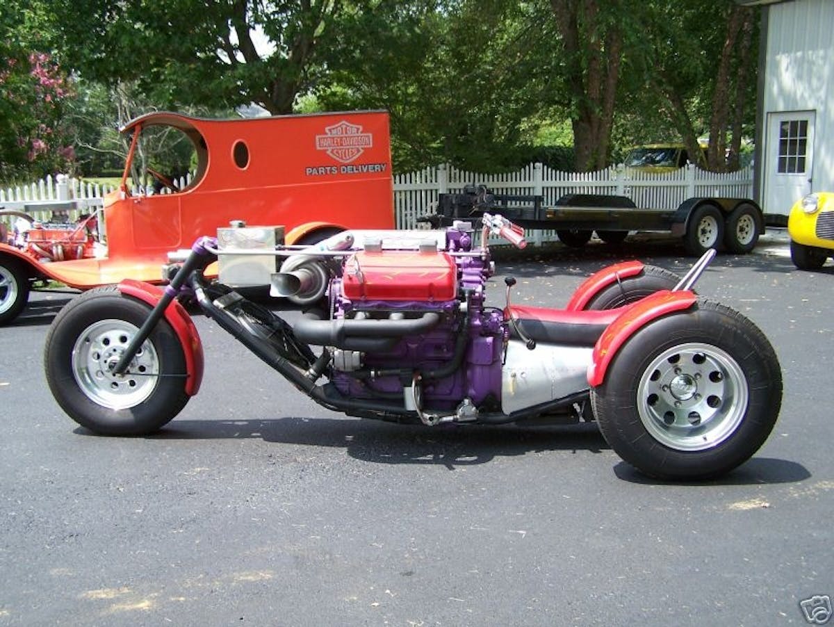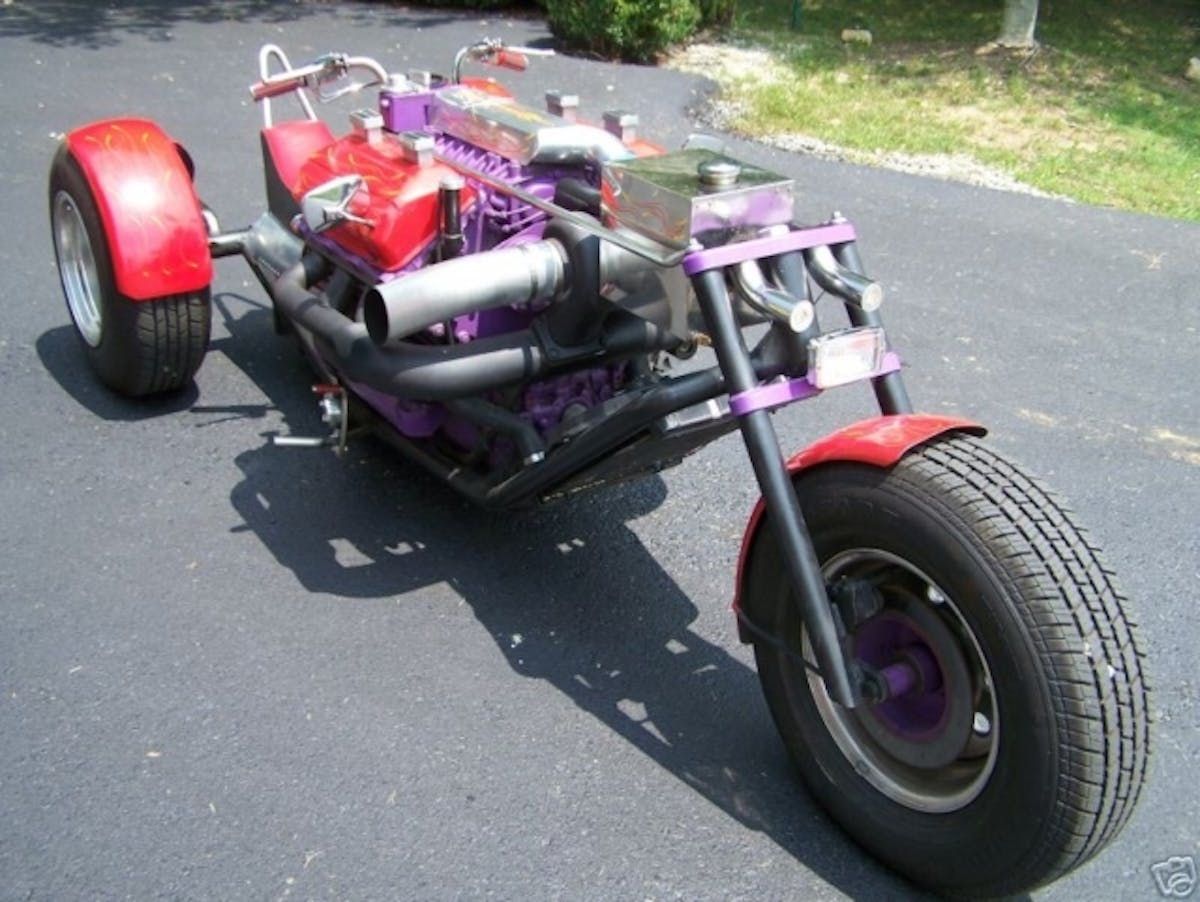 On Reddit, the trike was claimed as having “the required blower as well as a large turbo,” said user JP147. “It has a Ford C4 transmission with a manual valve body, as well as a narrowed Dana 44 axle. There is also a tow ball.”