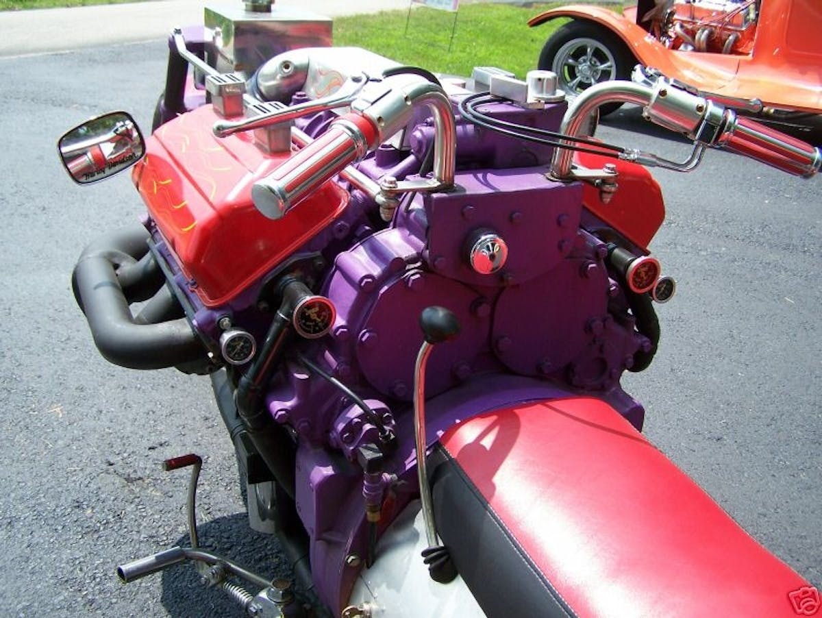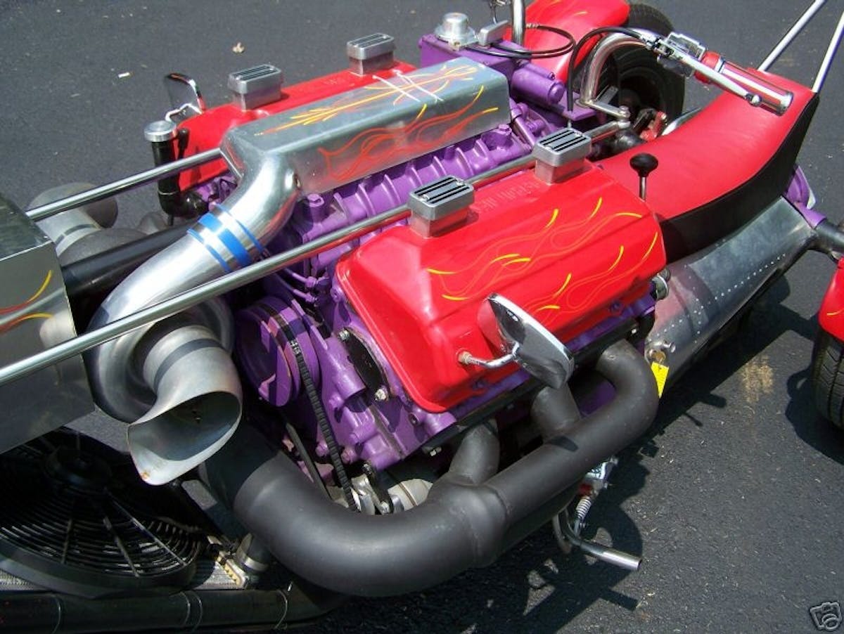 If we take one wheel away, however, the Yeti would have a hard time getting around. But that’s no problem for a trike. Case in point – a supercharged and turbocharged Detroit Diesel trike.