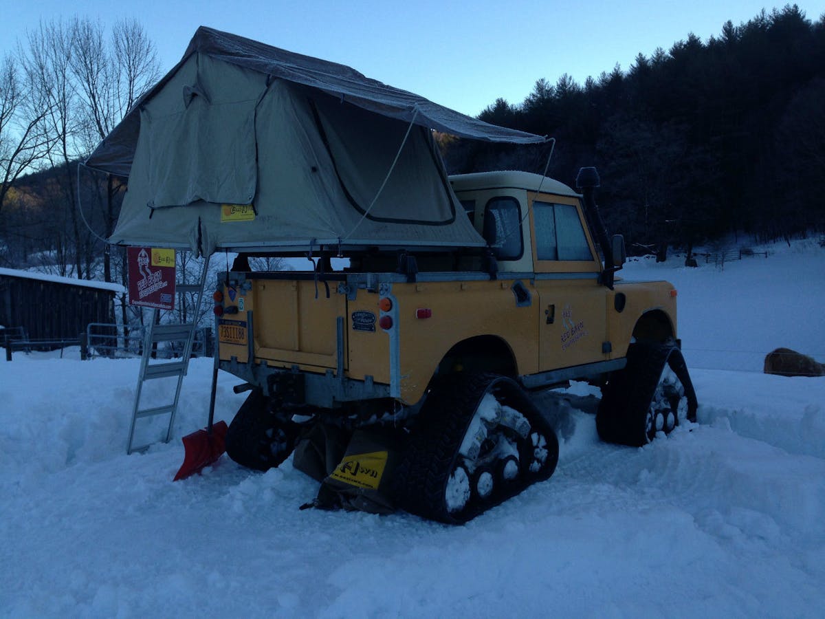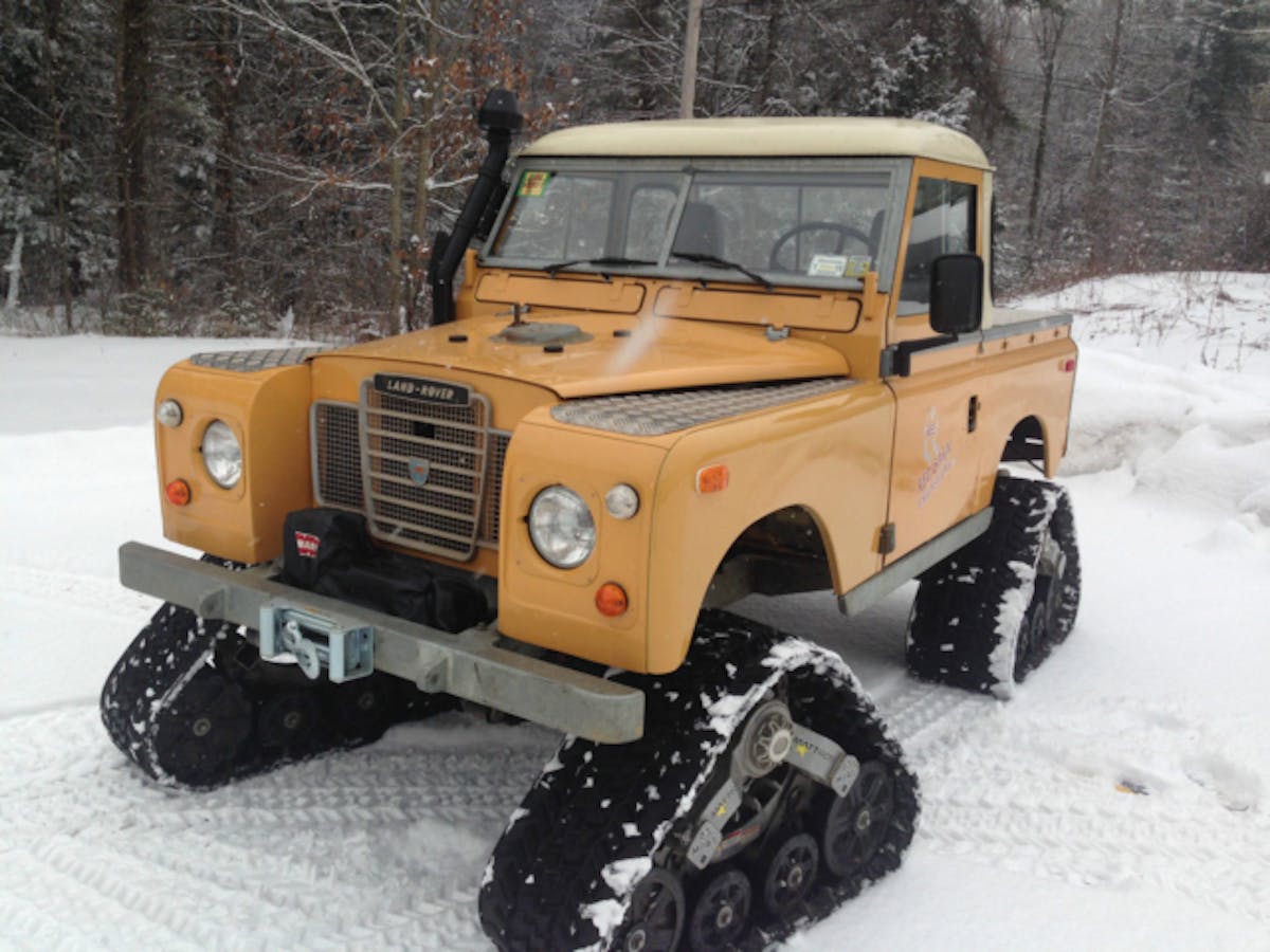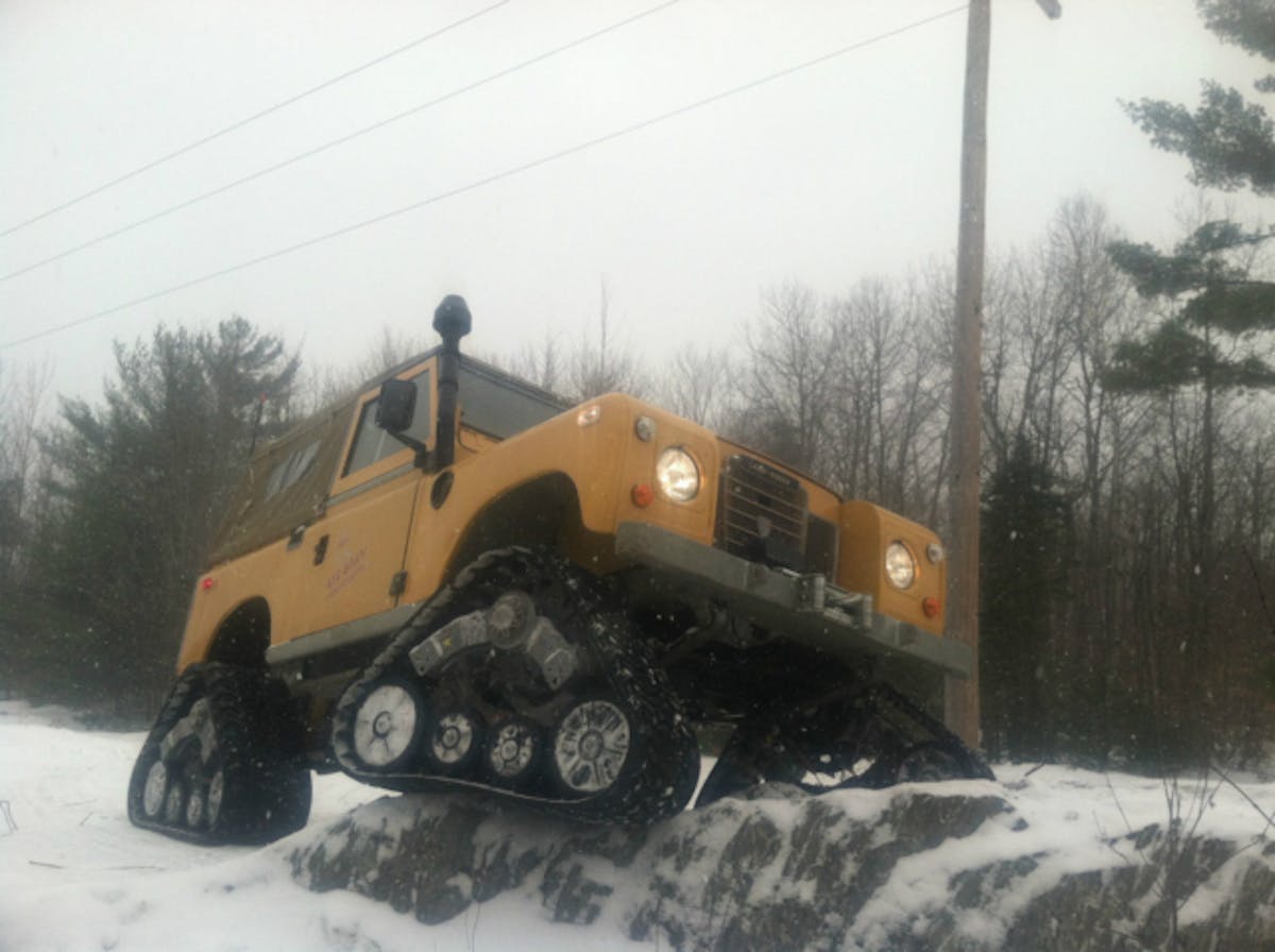 With winter still swirling snow around, the Land Rover would definitely be a blessing up north. Tank treads are generally better at navigating over the soft stuff since they can displace ground pressure over a larger area than tires can. And who wouldn’t love to hear the sound of a chugging diesel as they climb up a snow bank?