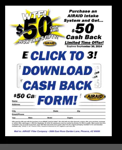 Airaid Filter Company is currently running a “Wow That’s Fifty” summer promotion from August 1 to September 30th on all qualifying cold air intake systems. Check out the list of qualifying parts here. When you purchase a qualifying cold air intake system during these months, you will qualify for a $50 mail in rebate, giving you cash back on your favorite intake systems.