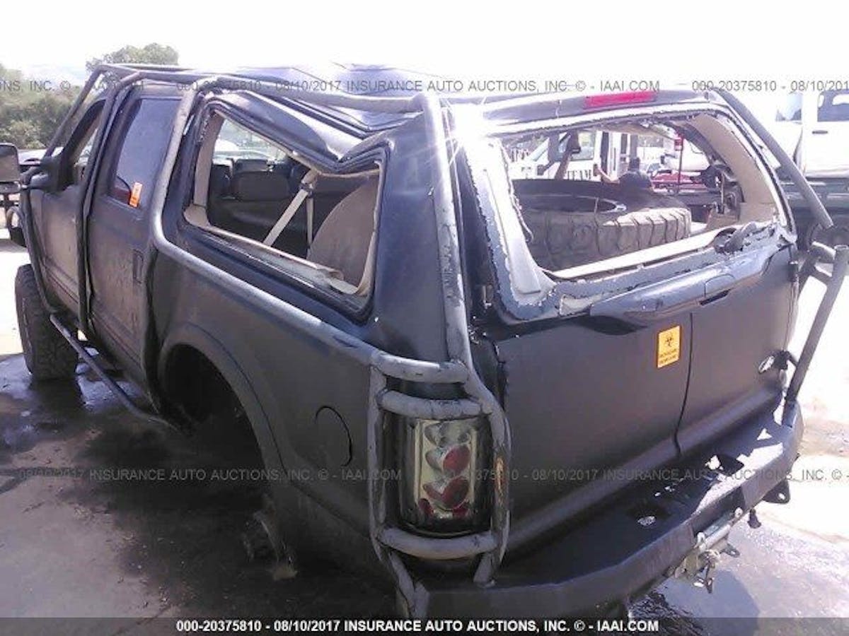 The Excursion underwent a pretty nasty accident, by the look of things. We can clearly see an exocage was installed onto the vehicle at some point, and it definitely served its purpose. It broke apart on the rear passenger side, but it likely kept the occupants sage during the rollover.