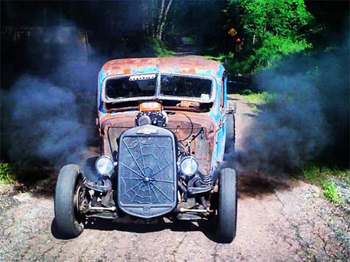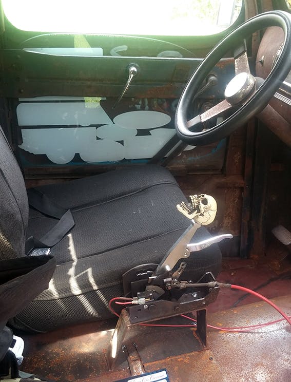 According to Steven Bachert who helped build the rat and currently drives it, the blue that you see is the original color of the truck and the last time it was registered is in the mid to late 50’s.