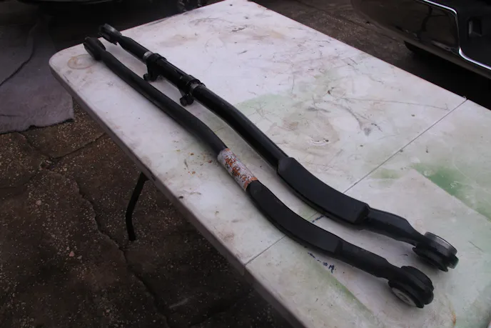 Some of you might look at the steering link and think adjusting that to center the steering wheel will work. It will not. If you adjust that bar, all you will accomplish is making your steering box off-center. When it comes to a new track bar, the most economical adjustable bar I could find was from Rough Country. The new bar is 1-1/2 inches in diameter and it is much heavier than the OE bar. This new track bar is made of forged steel and features rubber Clevite bushings for long life.