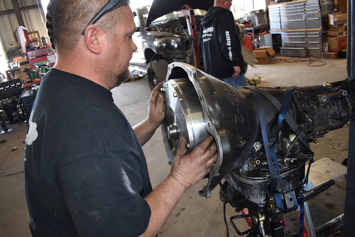 To handle our torque converter swap, we once again talked to Goerend and explained our issue. We felt there must have been converter advancements since big turbo trucks started using V10/V10 units. They explained that there has been and cited one of their “DA” converters. The DA converter would be loose up to around 1,900 to 2,000 rpm (which is when our 69 mm starts to make boost) yet tighten up by 3,000 rpm — putting a lot more power on the ground. Goerend informed us the new converter would also have a very high torque multiplication factor. It sounded perfect.