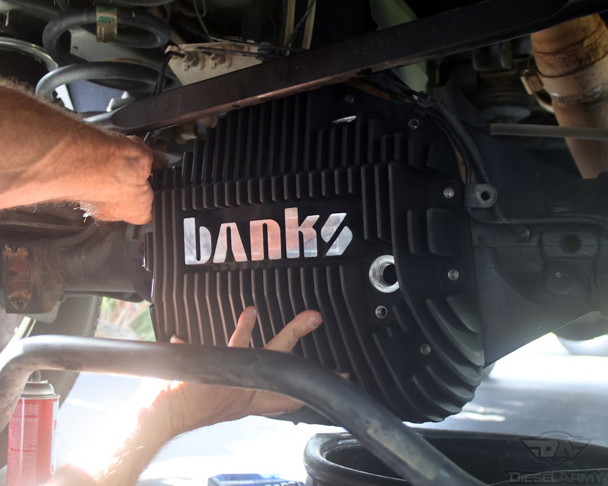 So, to accomplish this, he decided that instead of going to the local department store and buying whatever was on the shelf, ordering several quarts of AMSOIL Severe Gear and ATF fluid, as well as a Banks Power rear differential cover should get the job done. The AMSOIL fluid is a no brainer, as the synthetic fluid is some of the best in the industry and the new easy-to-use Easy Packs make filling the differentials and transfer cases easier than ever.