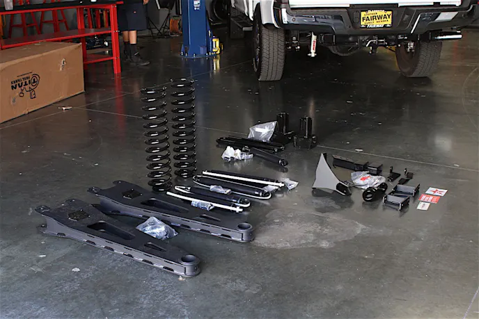 One thing we noticed while on the website was that we had to figure out if the truck had a two-leaf or three-leaf spring pack. “In some cases, the 2017 Super Duties come with a three-leaf spring pack, but most are a two-leaf,” said Ash. “If it’s a two-leaf, we include a component box that levels out the rear.”