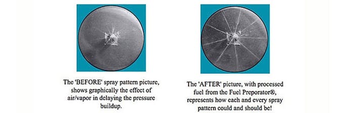 Entrapped air occurs when diesel fuel is sloshed and agitated in the tank, forming bubbles. These tiny bubbles are suspended in the diesel fuel and do not rise to the surface of the fuel as quickly as gasoline because of the increased viscosity of diesel. Unable to escape the suction of the fuel pickup, these bubbles are drawn into the fuel system and travel downstream.
