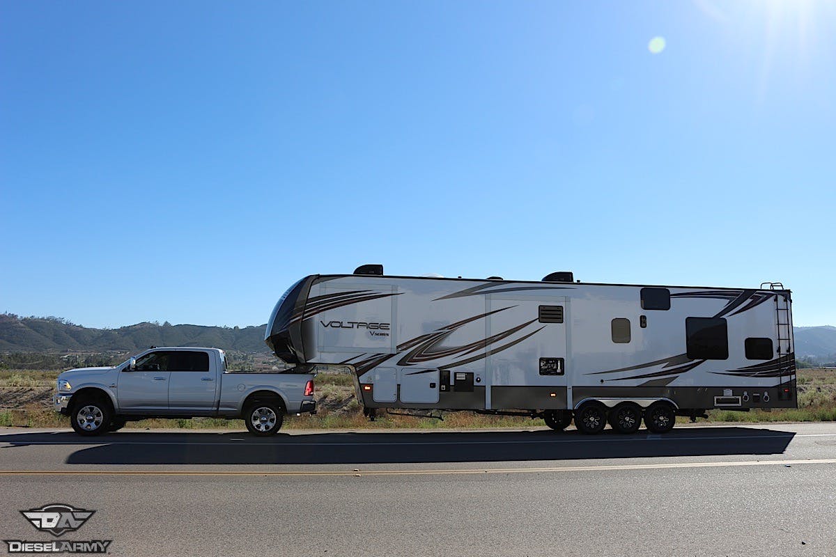 Before we tore into this Cummins-powered rig, we talked to Donnie about some of the problems he’d encountered while towing. He explained, “I could feel how top-heavy the trailer was…it would sway me.” He further elaborated that the excessive tongue weight pitched the nose of the truck up, making a light steering situation, and a heavy rear — a disconcerting combination when a gust of wind would broadside that 41-foot trailer!