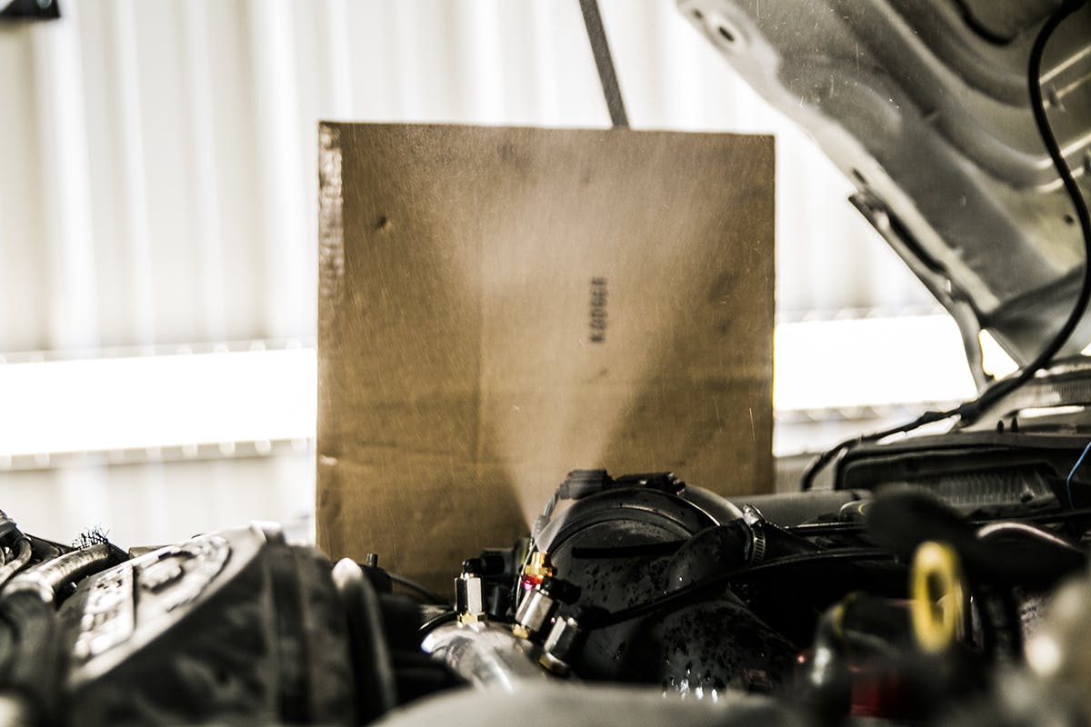 Getting a little help from a friend, they unhooked the water/methanol lines running to the intake and held them in the empty PowerBlend container. From there, Young followed the prompts and bled the system.