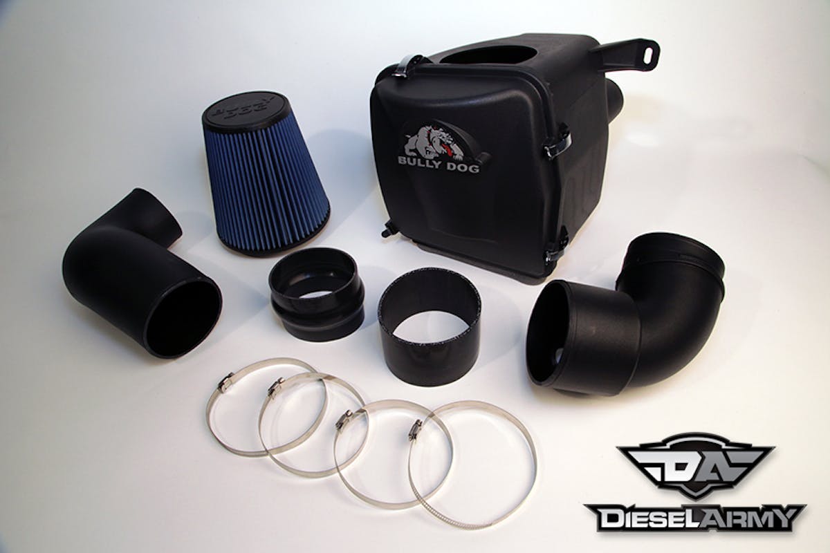 We spoke with Adrian Croot of Bully Dog about their intake kits and he had the following to say about their quality and testing procedures: “All of our intakes are injection-molded and fully enclosed with 8-ply filters. We do all development in-house at our location in Idaho. They are all dyno tested and road tested before we ever go to market and we also test all of our intakes paired with our tuners to ensure they work together nicely.”