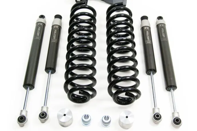 The ReadyLIFT 2.5-inch Coil Spring Lift Kit with Falcon Shocks and Dual Steering Stabilizer isn’t just another leveling kit. It’s a smartly engineered suspension upgrade designed for Super Duty owners who actually use their trucks — not just mall crawl in them.