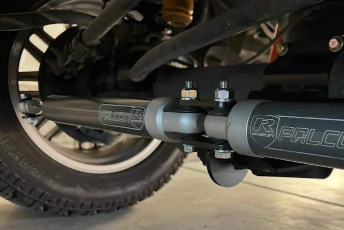 This Monotube design provides faster heat dissipation and more consistent damping performance compared to twin-tube designs. They resist fade even under prolonged use. Falcon 1.1s are specifically tuned for the increased ride height and spring rate of this lift kit, giving a balanced ride across varied terrain. The hard-anodized finish is built to survive the rust-prone, gravel-spitting underbelly of your Ford Super Duty. Falcon also optimized for the extra height, these shocks allow full articulation and motion control across the stroke, something your OEM shocks simply can’t do with a lift.