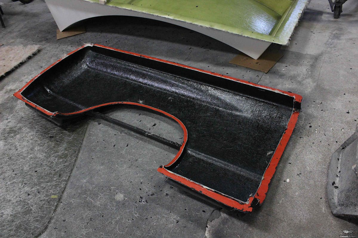 Now that the bed was gone and a great amount of weight was shed, it was time to replace what we removed. That is where our friends at GTS Fiberglass came in. GTS Fiberglass provided our bed skins that we were replacing the bed with. The fiberglass skins provide the traditional look from the side but in reality, it’s just a skin that leaves the inside open.