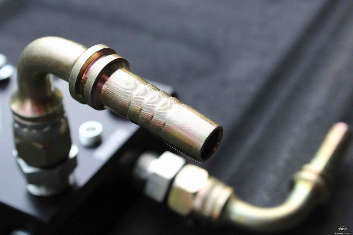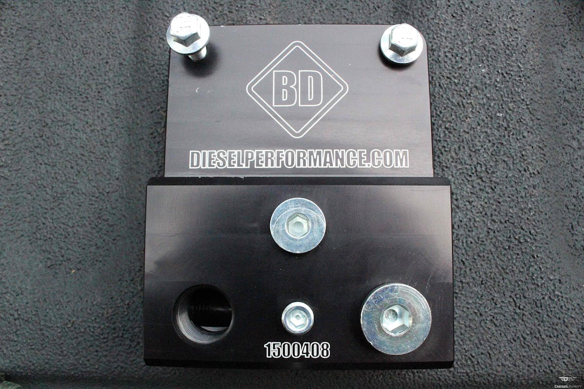 Getting our fuel to the engine, while very important, wasn’t our only project. Having the correct return pressure and volume back to the tank was a must. Again, trying to lose weight, we removed the factory fuel filter housing and replaced it with BD Diesel Performance‘s new, fuel distribution block.