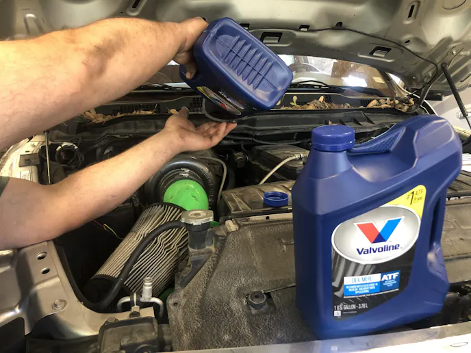 We began filling the transmission with fluid, making sure we didn’t move the truck because, as mentioned earlier, we have to verify the pressures are correct. Once it was topped off, it was time for the relearn.