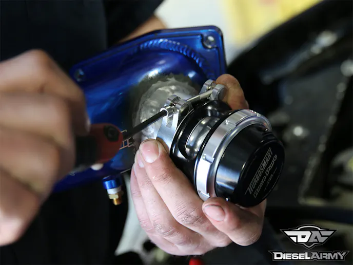 The blow-off valve is the solution. By venting the compressed air into the atmosphere, there is no pressure left in the system to put unnecessary stress on the turbo. But how do you adapt it to a diesel application that doesn’t produce a vacuum to open the gate like a gas engine does?