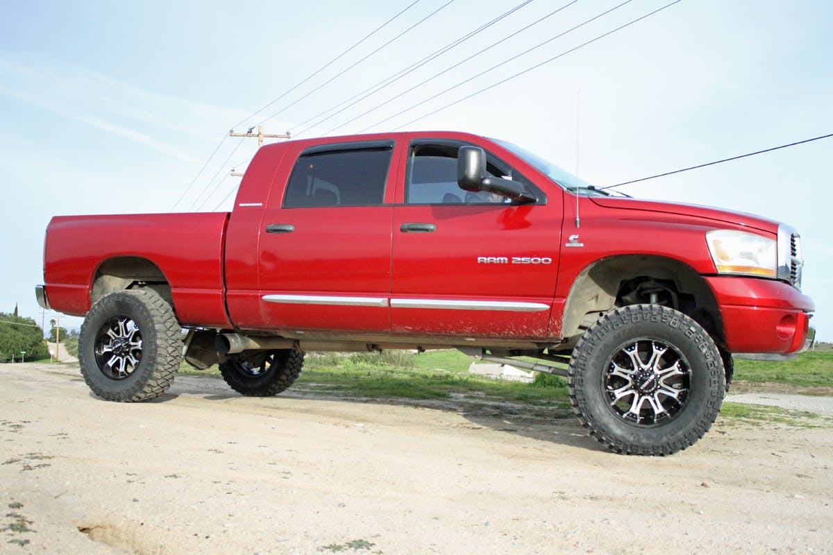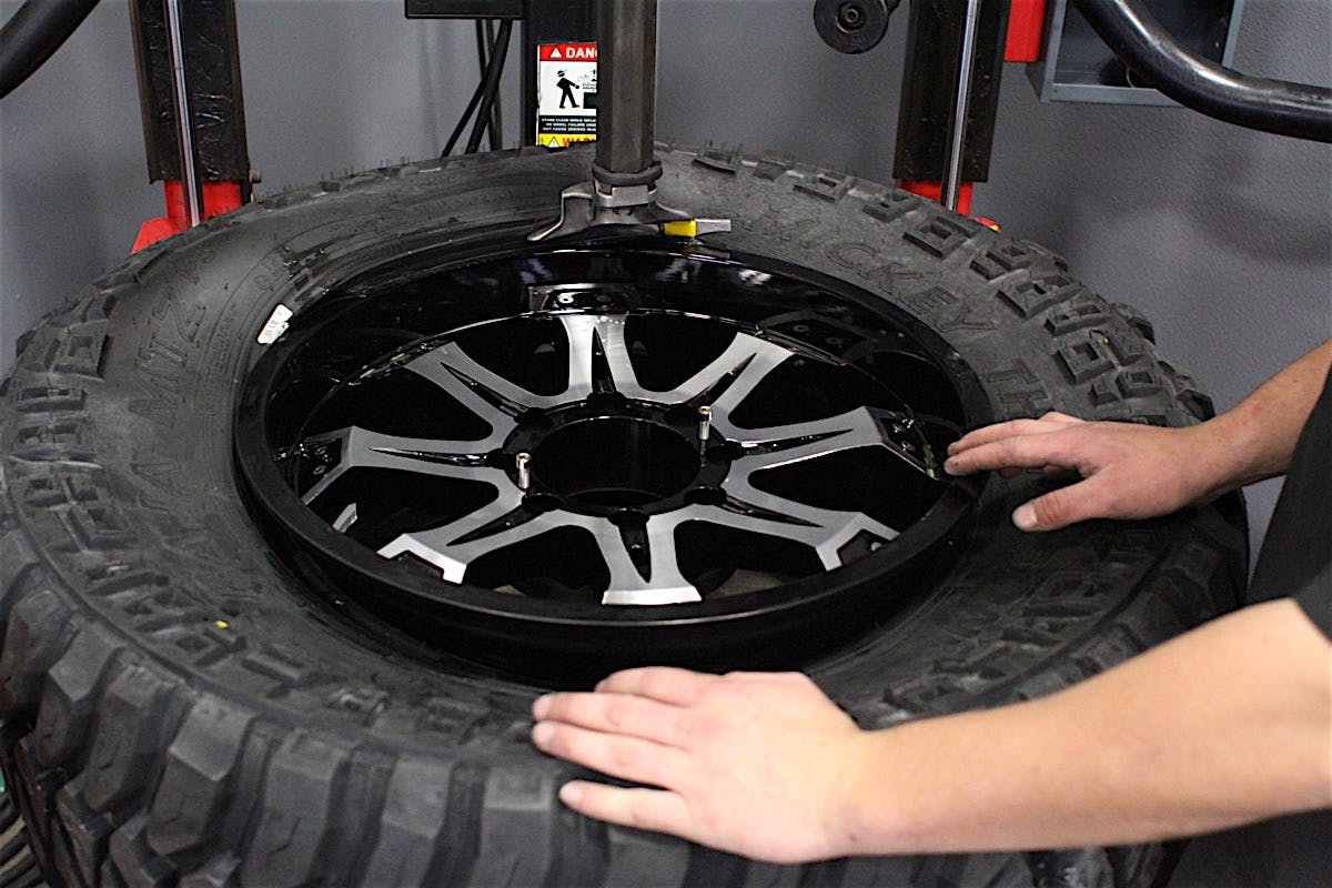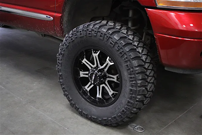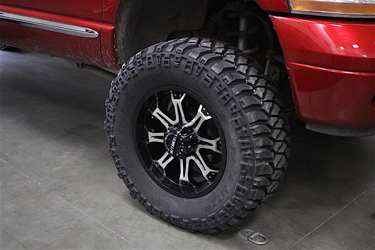 Whenever we do one of these wheel and tire installs, it’s fun to compare what was already on the vehicle with the new and improved wheels and tires going on. In the case of Farquhar’s Dodge Ram, we were swapping out a set of 17-inch MB TKOs wrapped in 35-inch Nitto Terra Grappler A/Ts.